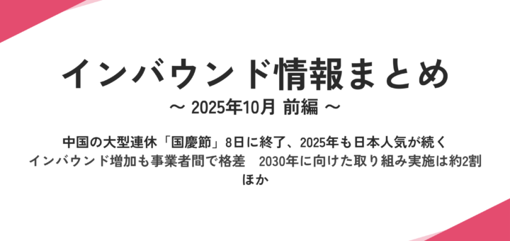 業界最大級のインバウンドビジネスメディア「訪日ラボ」及び 店舗向け集客一元化プラットフォーム「口コミコム」を運営する株式会社mov(代表取締役:渡邊 誠、本社:東京都渋谷区、以下mov)は、「インバウンドに関する最新トレンド・データ」「政府・自治体・企業などのインバウンド関連の取り組み」をはじめ、インバウンド対策に役立つニュースをまとめた「インバウンド情報まとめ【2025年10月前編】」を公開しました。