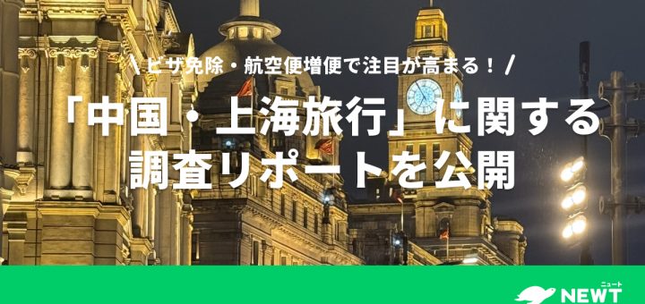 旅行アプリ『NEWT(ニュート)』は、「中国・上海旅行」に関する調査リポートを公開しました。NEWTが実施したSNSアンケートの結果、半数以上が中国を観光地として「魅力的」と回答したほか、「昨年より上海旅行に興味が高まった」人が4割以上など、注目度の高さが浮き彫りになりました。さらに約5割が1年以内の上海旅行を希望しており、本場の中華グルメへの関心が旅行動機として大きな影響を与えていることが明らかになりました。