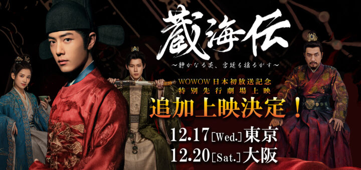 株式会社コンテンツセブン(東京都中央区 代表取締役:成七龍)はシャオ・ジャン主演の中国ドラマ「蔵海<ザンハイ>伝 ~静かなる炎、宮廷を揺るがす~」の先行上映会をすでに発表されている東京以外に大阪でも行うことを決定いたしました。