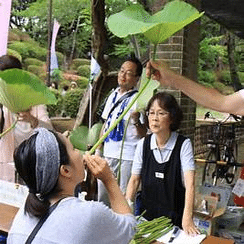 ちなみに、「碧筩杯」を今日においても楽しむことのできる場所と行事をご紹介します。横浜三溪園の「朝見蓮祭」、大阪万博記念公園の「朝の蓮見会」、長野県下伊那郡阿智村の辻野園、大阪市立長居植物園などの場所で、「碧筩杯」の文化体験ができます。百聞は一見に如かず、です。ぜひ足を運んでみて下さい。