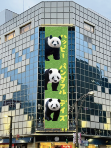 ⑤館内外がパンダ装飾に!屋外広告幕は3頭のパンダの写真!