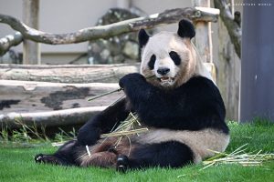 アドベンチャーワールドで初めて誕生したジャイアントパンダです。幼い頃の性格は非常にやんちゃで、運動場のタイヤやボールで遊ぶことが大好きでした。「良浜」は、優しい母親として多くの子どもを育て、⺟親である「梅梅(めいめい)」に負けないくらい⼦育てが上⼿なお⺟さんパンダになりました。