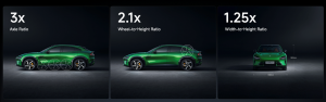 エクステリアでは、ホイールベース対ボディ全長が3:1、タイヤ径対車高が2.1:1、車幅対車高が1.25:1という理想的なバランスによって、見る者に強い印象を与える美しいプロポーションを実現。これにより、Xiaomi YU7は高性能SUV特有の低重心で力強いスタンスを体現しています。