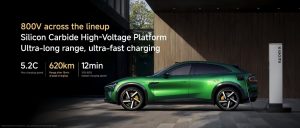最大5.2Cの超急速充電に対応し、わずか12分で10%から80%まで充電可能。さらに、15分で最大620km分の充電を実現します。