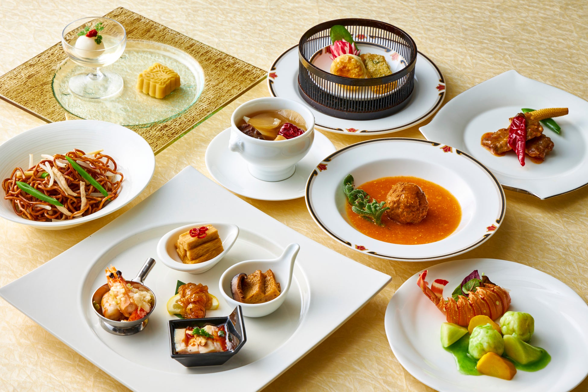 焼き小籠包や上海蟹味噌ソース煮、その他海鮮のロブスターテールなど上海料理を満喫でき、高級食材もたっぷり使用した贅沢なコースです。