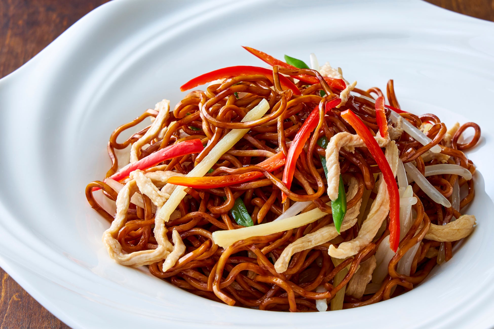 上海独特の黒蒸し麺を使い、味付けも中国の濃口醤油と薄口醬油をベースにしたたれで仕上げています。