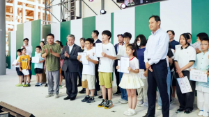 主催関係者および子どもアーティストたちは、共にテープカットを行い、記念撮影を通してその瞬間を祝い合いました。