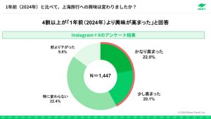 - 約4割が「昨年より上海旅行への関心が高まった」と回答し、潜在的な需要拡大が顕在化