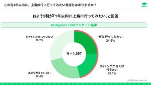 その結果、「いつか行ってみたい」という漠然とした憧れが、「今なら行けそう」という具体的な検討・行動へと変化しつつある現状が確認できました。今後、中国・上海を新たな旅行先として積極的に選ぶ動きが、さらに加速していくと考えられます。