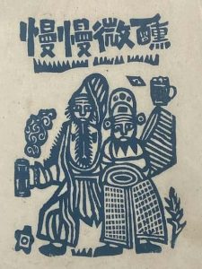 「“ゆっくり、ほろよい” ―― 現代の流行語がモチーフの甲馬版画」