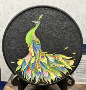鉱物顔料と金属糸を用い、陶板の上に自然や花鳥を鮮やかに描く工芸品です。元代(1271年~1368年)後期に西アジアやアラビア地域から伝来した技術を明代(1368年~1644年)に発展させ、清代(1644年~1912年)には絵画的な様式が誕生。焼成せず研磨で光沢を出す独自の技法により、絹のような艶を放ちます。描かれるモチーフには自然や民族文化など多彩で、額絵や文房具、装飾品として今も人々を魅了しています。