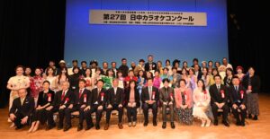 第27回日中カラオケコンクールの全員集合写真(主催者、VIP、参加者、特別ゲスト含む)