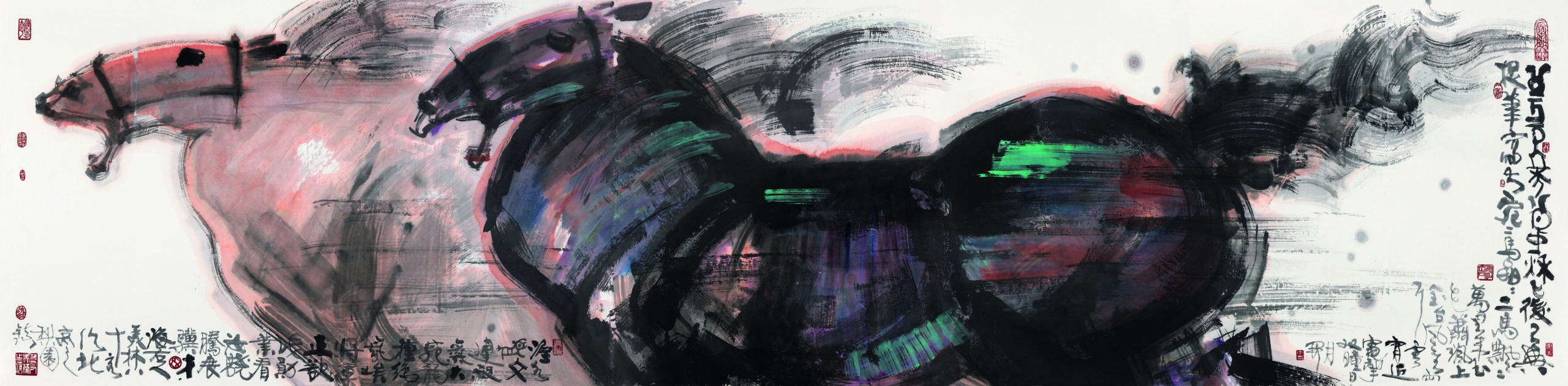 韓美林は中国の伝統的な書と書画をベースにしながら色彩やタッチに新しい表現を挑戦してきました。韓美林の創造の世界は書画・水墨画に留まらず、陶芸、デザイン、彫塑、そして大型オブジェへと限りなく芸術の世界を広げています。最近ではアウディやベアブリック等のブランドとのコラボレーションも展開しています。独自の世界観を生み出し、中国の美術史上に格別な地位を築いています。