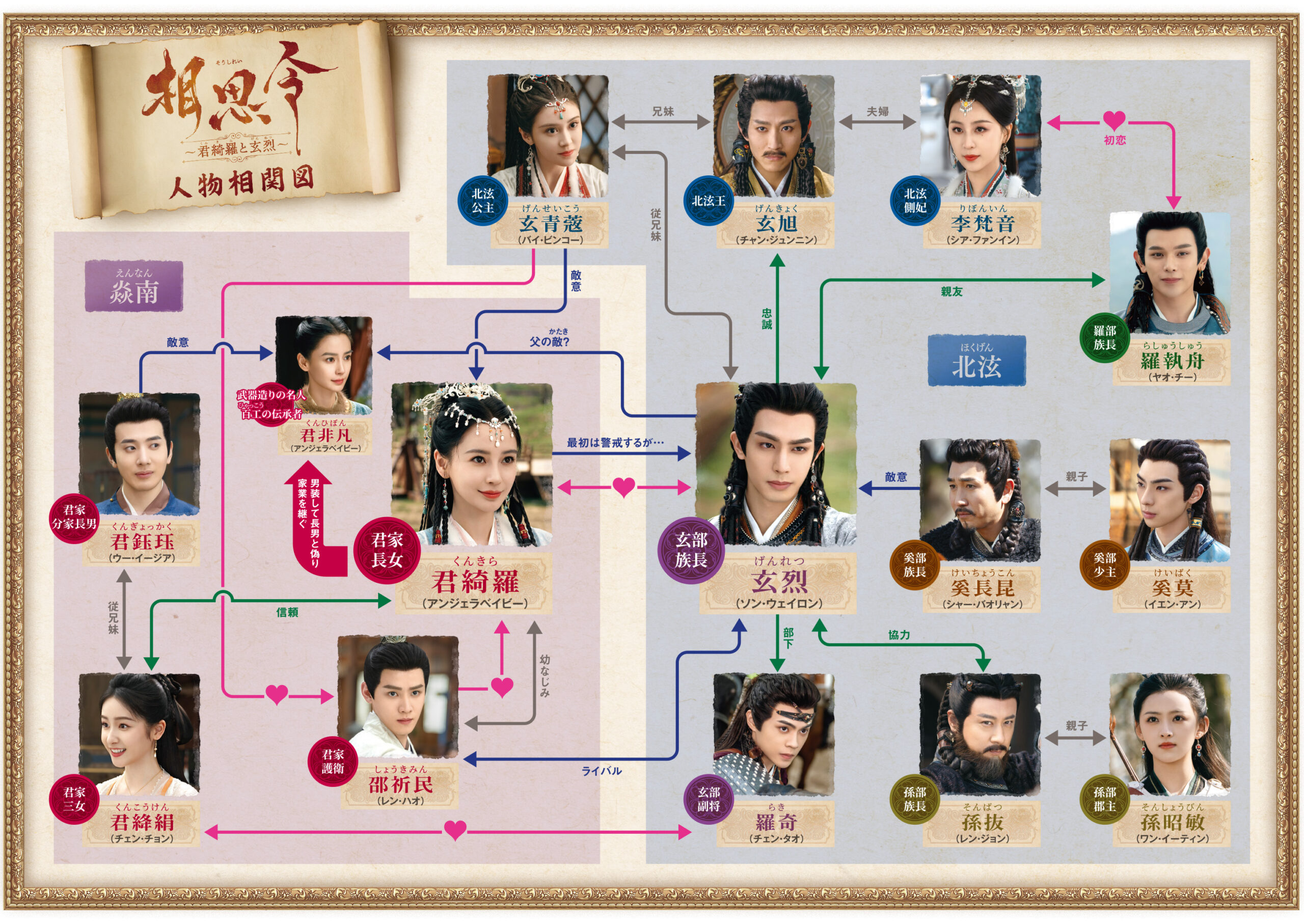 君綺羅にとっては幼なじみであり家族のような存在の護衛・邵祈民(しょうきみん)を「春家(しゅんけ)はトキメキざかり~四つ葉に咲く恋~」のレン・ハオが演じ、君綺羅の運命の恋人・玄烈と三角関係を繰り広げるほか、「流水舞花(りゅうすいまいか)〜遥かなる月落城〜」ヤオ・チーと「永安夢~君の涙には逆らえない~」シア・ファンインが覇権争いに翻弄された恋人同士を熱演。彼らの切ない恋は涙なしには見られない! さらに「祈今朝<ききんちょう>〜失われた記憶、共鳴する愛〜」バイ・ビンコー、「安楽伝」のチェン・タオ、ワン・イーティンら注目の若手がキーマンとなるキャラクターを好演! 複雑に絡み合う恋模様や友情、忠誠心、家族の絆など心揺さぶる数々のエピソードも見どころ!