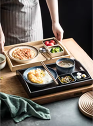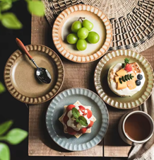 陶器製 一人用食器セット【トレー付き・スープ皿・パスタ皿・ごはん皿・朝食用ボウル】
