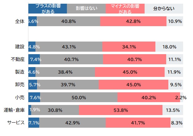 旅客運送業など『運輸・倉庫』は5割超でマイナス、今後は『不動産』のマイナス割合が突出