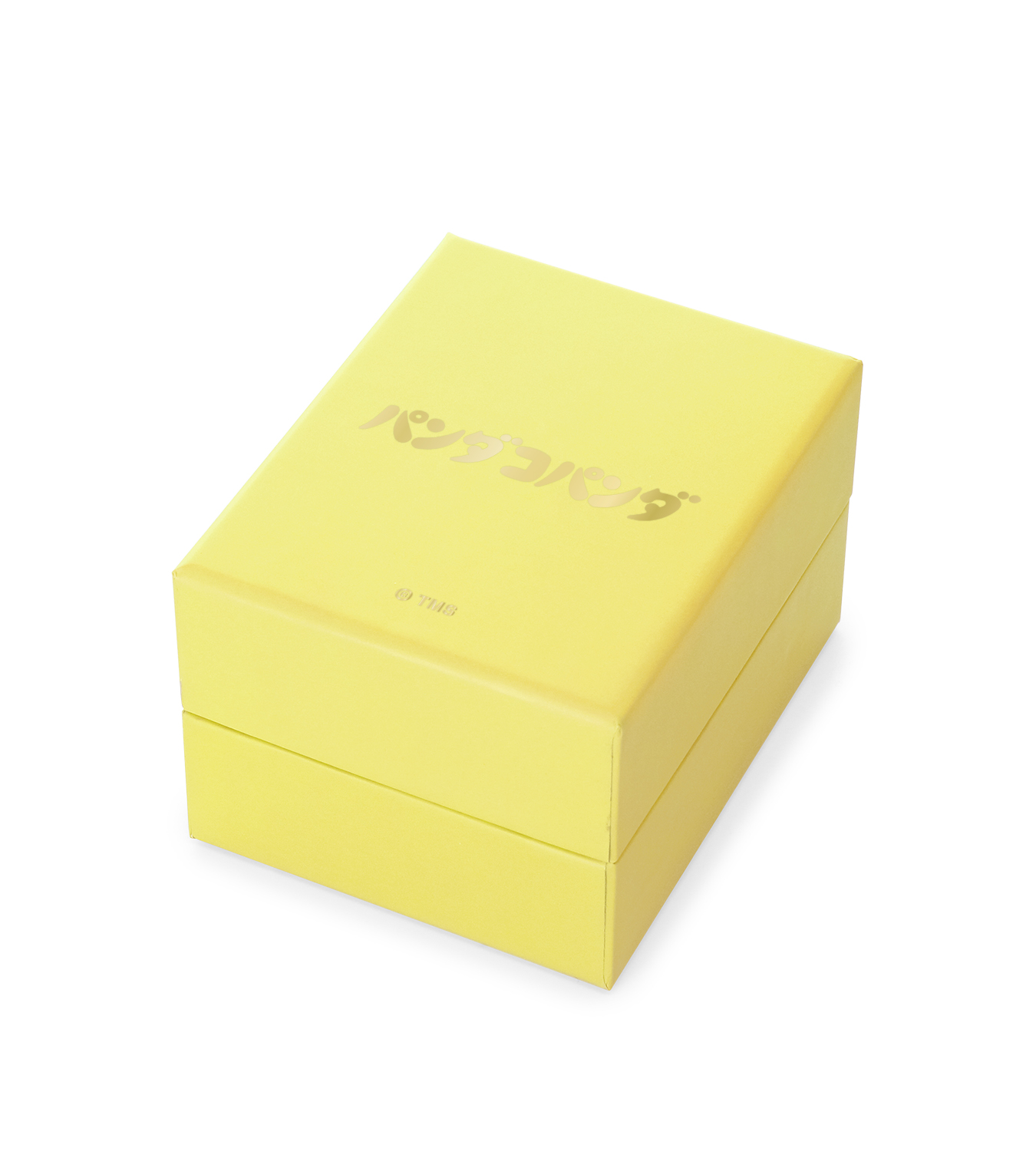 BOXは黄色をベースにロゴを箔押しでデザインしました。 時計をそのまま飾っておけるよう、高級感のある仕様です。 日常使いからイベントなどの特別な日まで、様々なシーンでご活用ください。