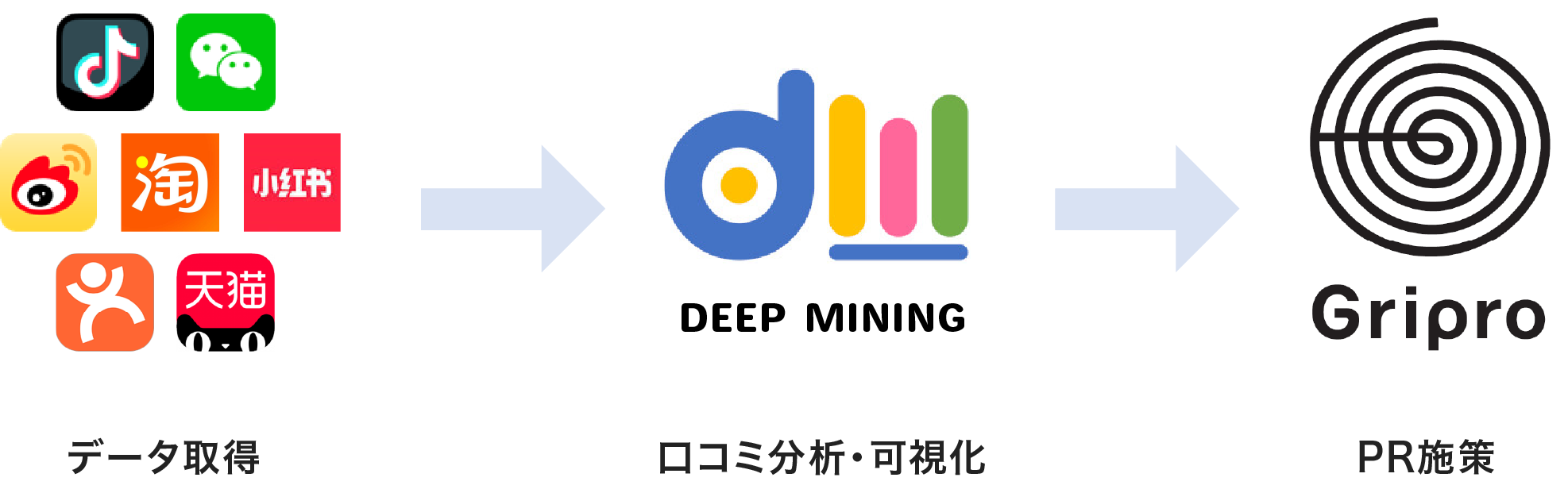 株式会社Gripro(本社:大阪府大阪市、以下Gripro)は、中国市場向けデータ分析プラットフォーム 「DEEP MINING」(運営:Deep Mining Technology Co., Ltd.)の日本国内公式代理店としての活動を開始いたしました。