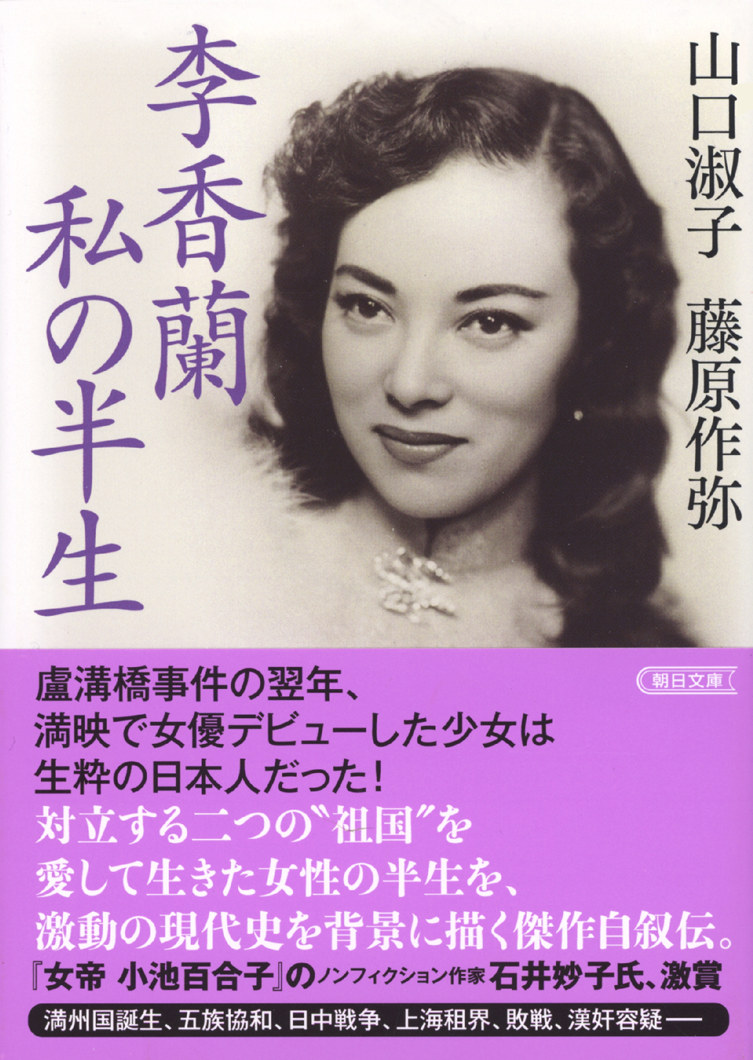 2026年3月6日(金)に、朝日文庫より女優の山口淑子さんと作家の藤原作弥さんの共著『李香蘭 私の半生』が発売されました。戦前から戦後にかけて、日中両国で活躍した女優・李香蘭。実は彼女は生粋の日本人でした。戦中は中国人女優として生き、戦後は日本人女優・山口淑子、ハリウッドではシャーリー・ヤマグチとしても活躍、その後はワイドショーの司会者、政治家としても活動します。何が彼女を突き動かしたのか――。激動の時代を自らの力で切り拓き、強く生きた女性の自叙伝。解説は、本書を「特別な一冊」と語る『女帝 小池百合子』の著者・石井妙子氏です。