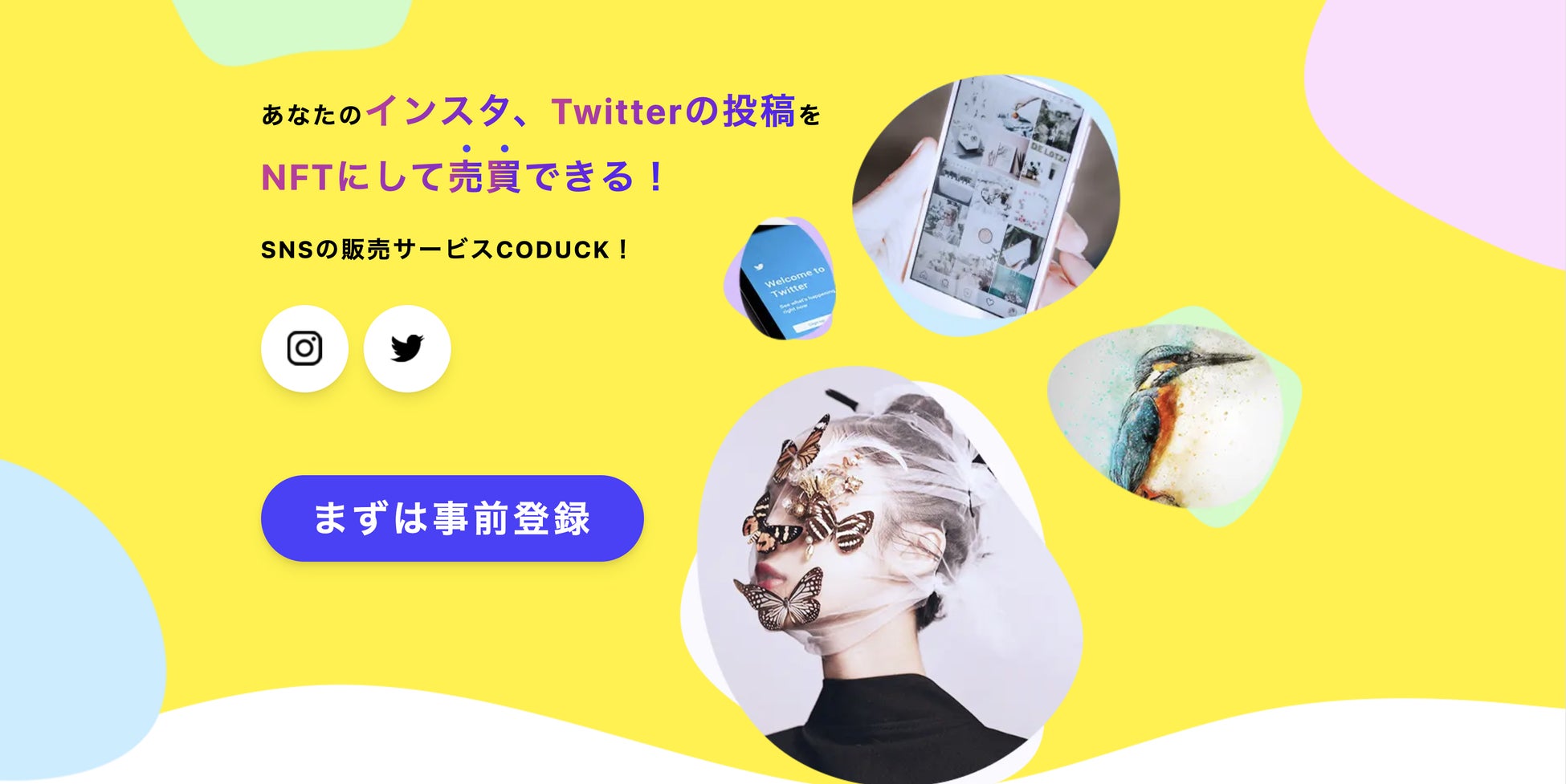 CODUCKは、あなたのInstagram, Twitterの投稿をNFTとして売買できるプラットフォームです。