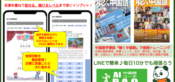 LINEで続くAI中国語学習! 『聴く中国語』教材×AI中国語コーチPAO 「ジョギングプラン」で、音読+会話を習慣化
